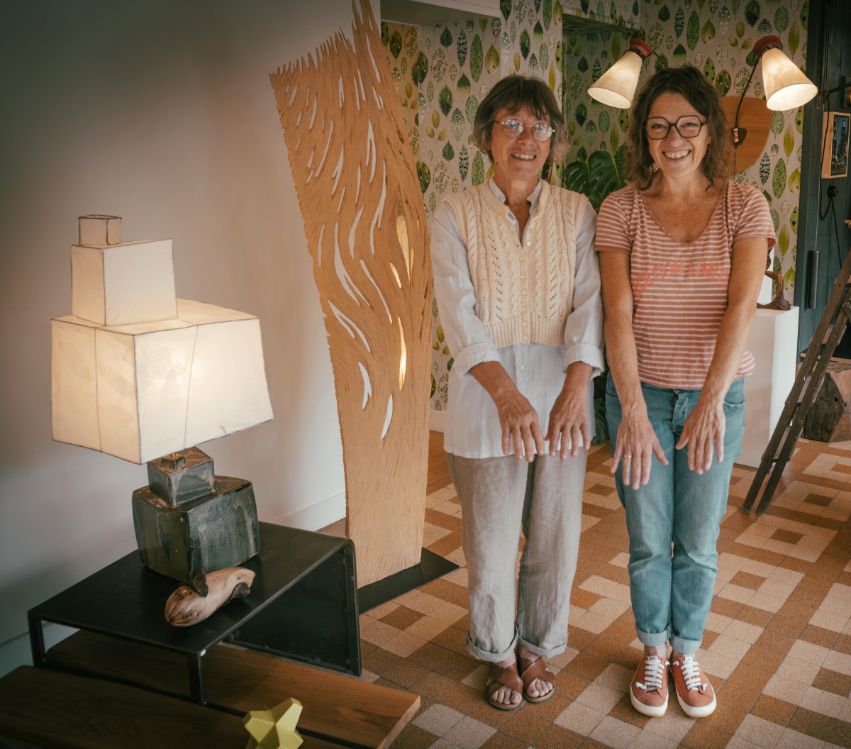 Au premier plan, nos bras, nos mains. Nos quatre mains d’artisanes. Nous partageons une même vision des métiers d’art : expérience et savoir-faire, qualité plastique des formes et des matériaux, relation à l’usage et à l’espace. Notre travail est collaboratif, il commence dans l’atelier de la céramiste.