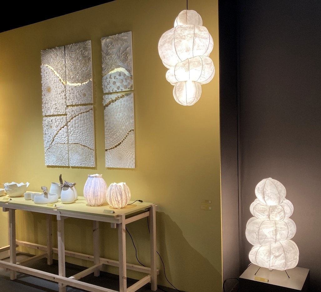 Nouvelle Collection Bulles que sera présentée à Maison &Objet, Fine Craft, en Janvier 2026. Déclinée en petites lampes au sol, Lampadaire avec support en bois ou Suspensions ces bulles translucides éclairent avec un design organique et moderne. Les accessoires sont faits main par des artisans et la technologie LED très basse tension. Espace Fine Craft, Pavillon Luminaires STAND H10. MAISON [...]